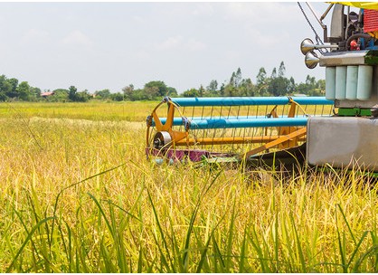 • 拖拉機和收割機在農(nóng)場收大米
